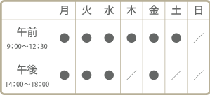 【休診日】 日曜・祝祭日、木・土曜日の午後